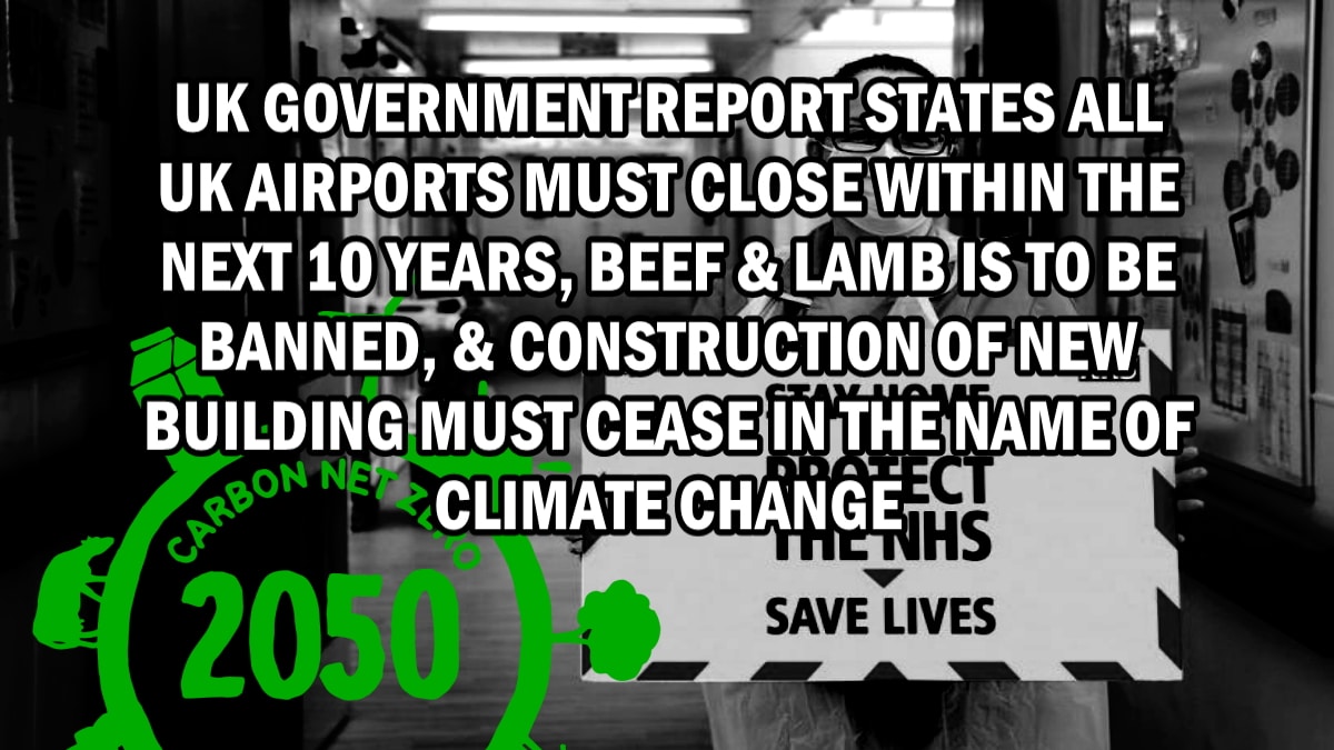 UK Government report states all UK Airports must close within the next 10 years, beef and lamb is to be banned, and construction of new buildings must cease in the name of Climate Change