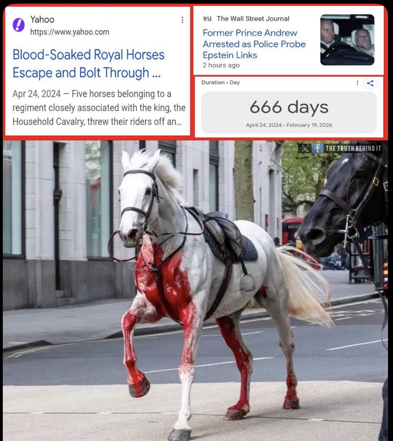 6 Police Officers arrested him on his 66th birthday - exactly 666 days after the one and only time a Royal King’s Horse was seen running through London covered in blood.