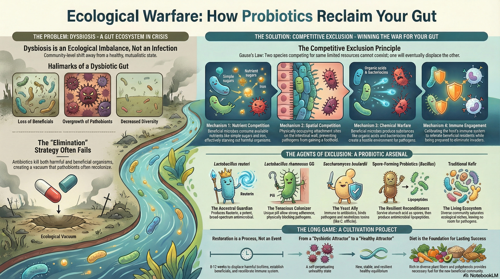 The goal of these AI-generated materials is to help you navigate the "bistability" of the gut ecosystem. Because the source text is dense—covering everything from the molecular structure of tight junctions to the evolutionary history of Akkermansia —the Studio materials help break this down into actionable formats, such as timelines for recovery or explanations of why "shock and awe" treatments fail compared to long-term cultivation.