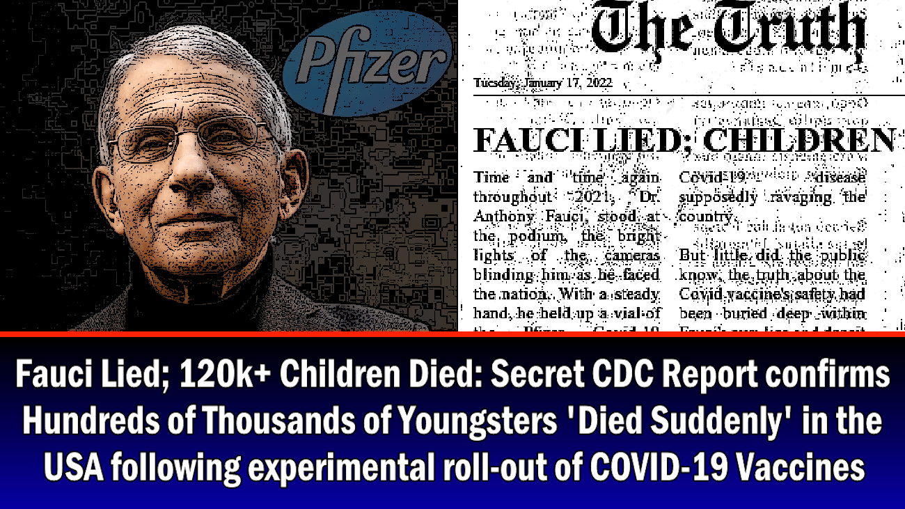 Fauci Lied; 120k+ Children Died: Secret CDC Report confirms Hundreds of Thousands of Youngsters ‘Died Suddenly’ in the USA following roll-out of COVID-19 Vaccines