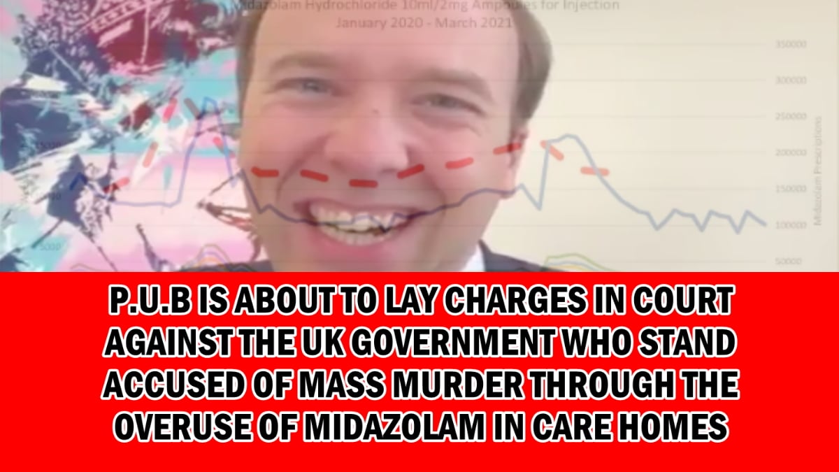 The Peoples Union of Britain (PUB) is about to lay charges against the Government for mass murder via the blanket use of the end-of-life pathway throughout the alleged Covid-19 pandemic, which involved overdosing the elderly and vulnerable with morphine and midazolam.