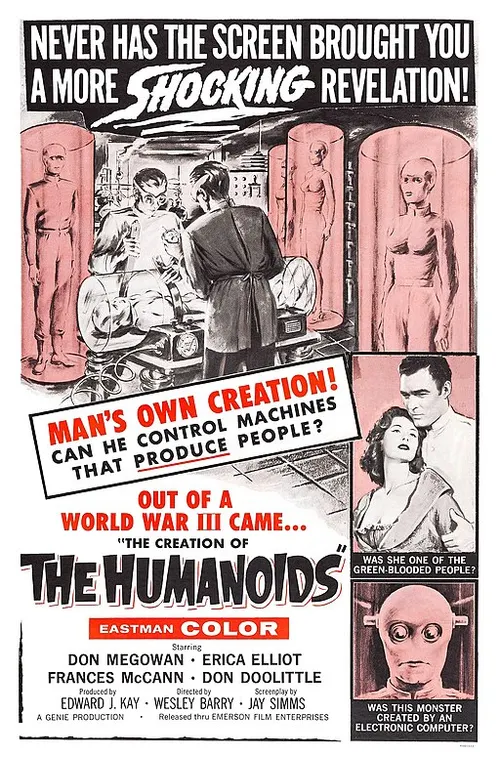 Synopsis: A 1962 American science fiction film. The film is set in the 23rd century, following a nuclear war that destroyed 92 percent of humanity, leaving a drastically diminished population struggling to survive. In this post-apocalyptic society, blue-skinned, silver-eyed human-like robots known as "humanoids" have become essential, assisting the survivors with labor and maintaining a high standard of living. These humanoids are built with artificial, ultra-logical personalities and appear human except for their synthetic skin, metallic eyes, and lack of hair. A fanatical human organization called the Order of Flesh and Blood opposes the humanoids, fearing they will take over and referring to them derisively as "clickers". The Order engages in violent acts, including bombings, to prevent the humanoids from becoming too human-like. Meanwhile, a scientist, Dr. Raven (played by Don Doolittle), develops a technique called a "thalamic transplant" that transfers the memories and personality of a recently deceased human into a robotic replica, creating human replicas with genuine emotions and memories. These human-humanoid hybrids awaken unaware of their transformation, though their human personalities are temporarily shut off between 4 and 5 A.M. when they report back to the central computer known as "the father-mother".