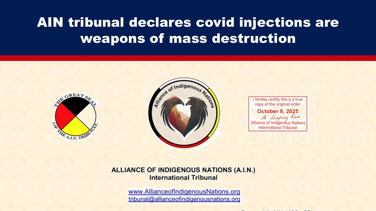 On 8 October, the Alliance of Indigenous Nations (“AIN”) International Tribunal issued a significant declaration stating that covid injections are biological and technological weapons of mass destruction under international law.