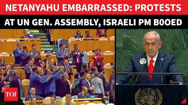 Israeli Prime Minister Benjamin Netanyahu faced boos and walkouts during his speech at the UN General Assembly on Friday. Netanyahu’s address came after multiple world leaders condemned Israel’s actions in Gaza Strip, calling for an end to the conflict. As Israeli PM spoke, many delegates left the hall in protest. - TOI News.