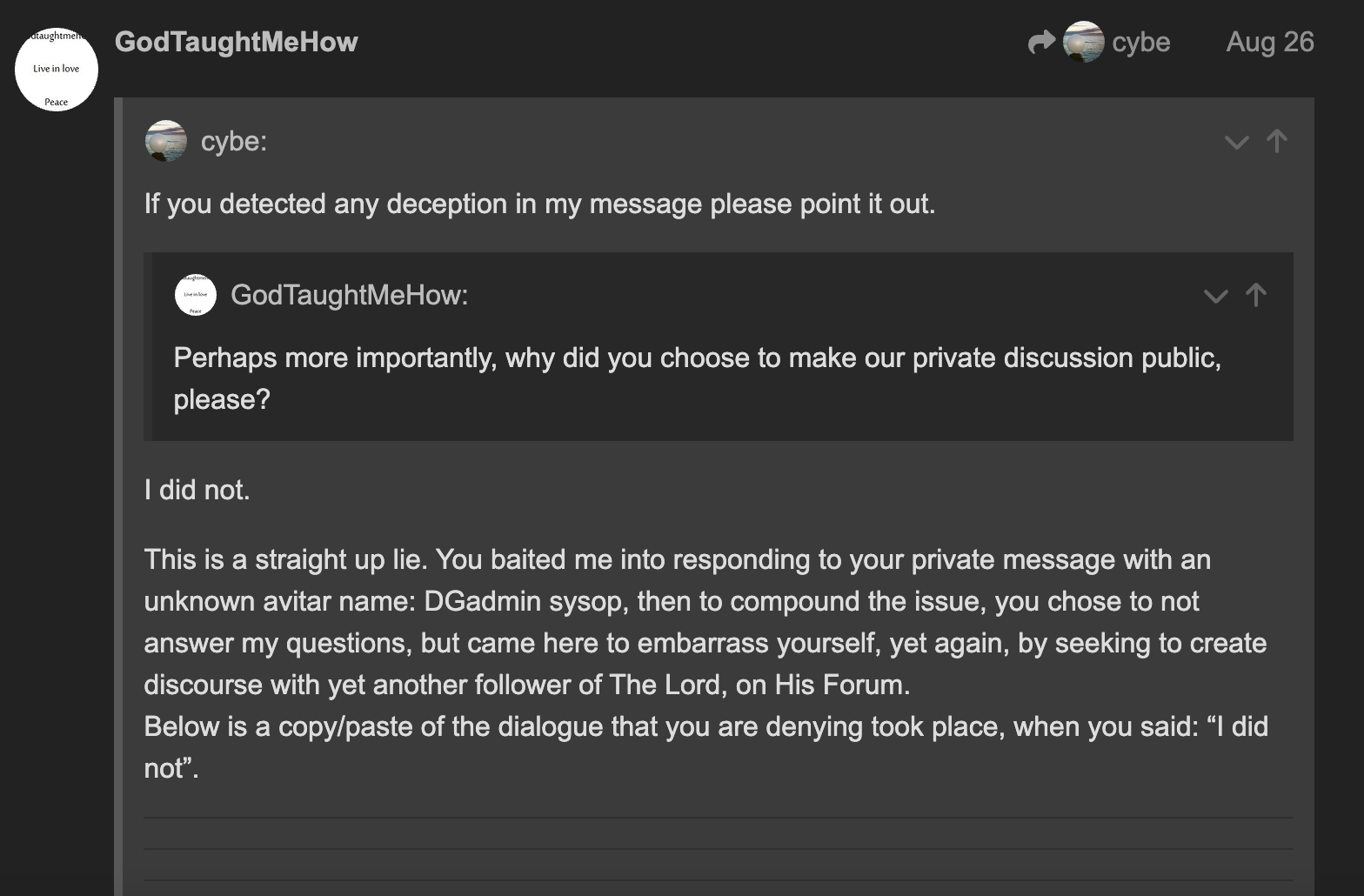 Because you used the quote feature incorrectly, your reply appeared in the grey quote style that normally marks my own text. I didnât notice it at first, since one usually doesnât re-read their own past messages. By formatting it that way, your message was effectively masked to look like mine.