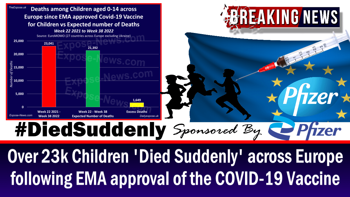 An investigation of official statistics on deaths across Europe has found that ever since the European Medicines Agency approved the Covid-19 vaccine for children in the middle of 2021, a total of 23,000 children have lost their lives.