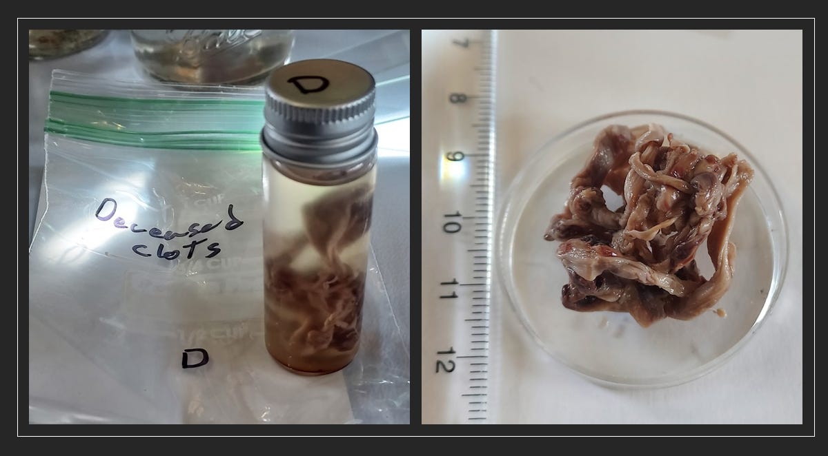 In this paper we show the preliminary data of clot solubility testing with different caustic chemical reagents. We have previously reported on microscopy and Near Infrared spectroscopy of these same clots samples, from a deceased individual, and C19 vaccinated and unvaccinated living individuals.