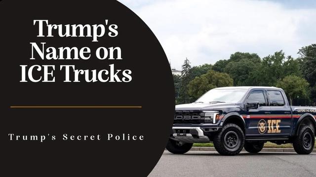 Trump continues his habit of marking his name on everything he can, as the brand new ICE vehicles have "President Donald J. Trump" decals on the back windows. In gold lettering, of course. Source: Antichrist 45 | Brother Paul's channel.