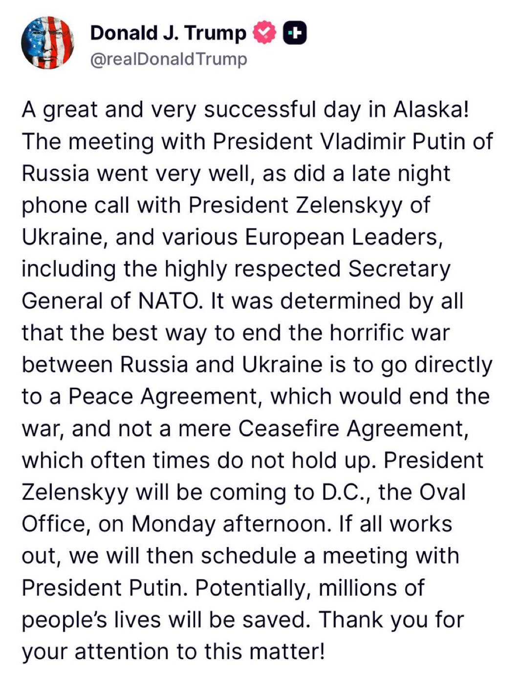 The Trump-Putin Alaska Summit - Pretense for Trump being awarded the Nobel Peace Prize?