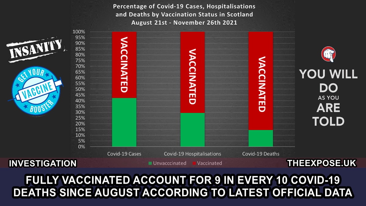 the real threat is the bio-weapon fraudulently claimed as a “vaccine,” which is a gene therapy shot. The latest official data coming from Public Health Scotland (PHS) reveals that nine out of ten deaths have occurred in those who are said to be fully “vaccinated.”
