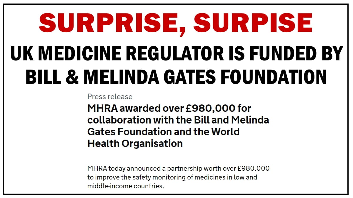 UK's medicine regulator receives funding from the Bill & Melinda Gates Foundation that pushes vaccines and depopulation