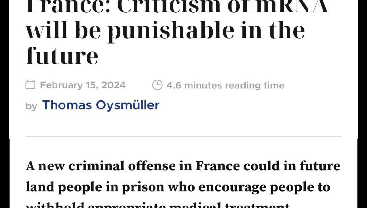 France: ANY Criticism Of The mRNA DEATHVAX™ Platform Punishable Up To 3 Years Imprisonment And 45,000 Euros
