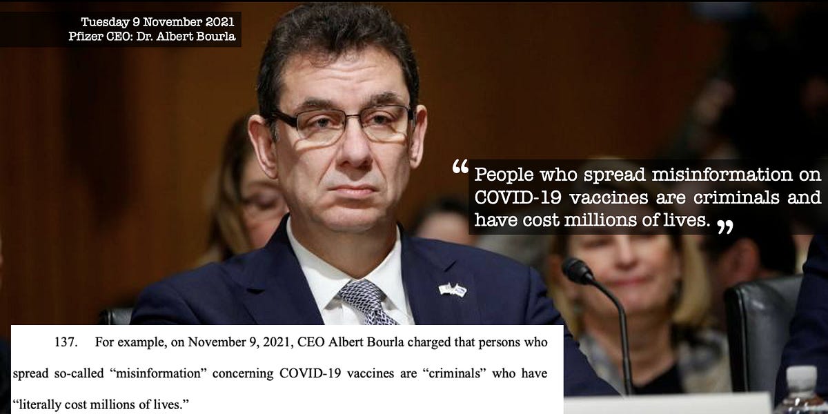 Per the press conference, Kobach reported that Pfizer CEO Albert Bourla stated publicly that Pfizer did not participate in the Operation Warp Speed program to avoid government oversight and maintain control (and secrecy) of their data reports.